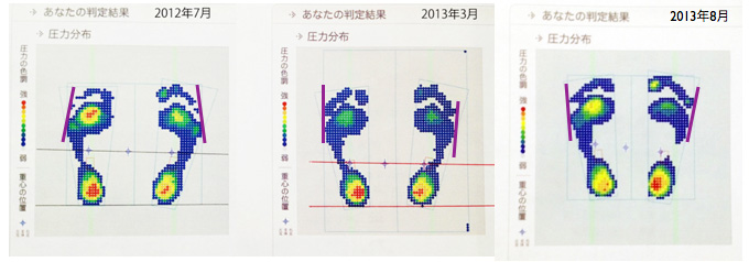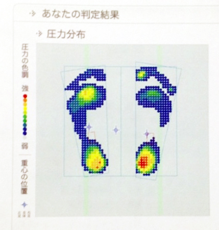うーん、右足のアーチが上がっていて、左側も微妙に圧力が・・・普段は、スニーカーなのですがこの日は5本指パンプスイン+ショショットYve。だからじゃないかと思ったくらいあまりよくは思えない・・・。